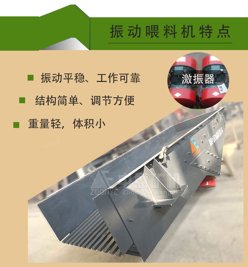 振動(dòng)給料機(jī)在生產(chǎn)流程中,可把塊狀、顆粒狀物料從貯料倉(cāng)中均勻、定時(shí)、連續(xù)地給到受料裝置中去,在砂石生產(chǎn)線(xiàn)中,可為破碎機(jī)械連續(xù)均勻地喂料,并對(duì)物料進(jìn)行粗篩分,廣泛用于冶金、煤礦、選礦、建材、化工、磨料等行業(yè)的破碎、篩分聯(lián)合設(shè)備中。