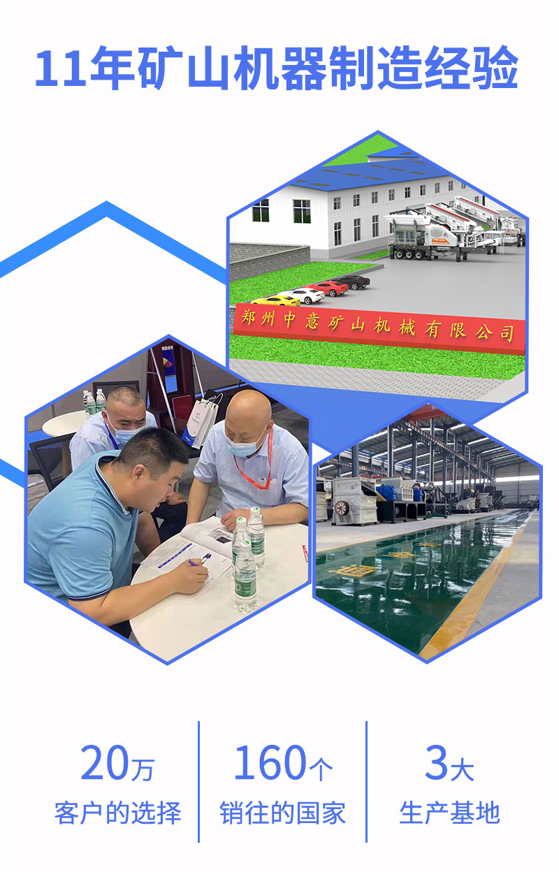 鄭州中意礦山機(jī)械有限公司是一家集研發(fā)、生產(chǎn)、銷售于一身的礦山設(shè)備供應(yīng)商,旗下?lián)碛卸鄠€(gè)生產(chǎn)基地,主營(yíng)業(yè)務(wù)包括破碎、制砂、建筑垃圾再生利用等設(shè)備的生產(chǎn)銷售,積極推出各種新型設(shè)備,同時(shí)提供一對(duì)一定制服務(wù),細(xì)化滿足用戶需求。歷經(jīng)多年發(fā)展歷程,國(guó)內(nèi)市場(chǎng)占有率不斷提升,同時(shí)積極開拓國(guó)外市場(chǎng),設(shè)備出口至美國(guó)、俄羅斯、南非等多個(gè)*和地區(qū)。無(wú)論何時(shí),無(wú)論何地,中意礦機(jī)永遠(yuǎn)竭誠(chéng)為您服務(wù)!